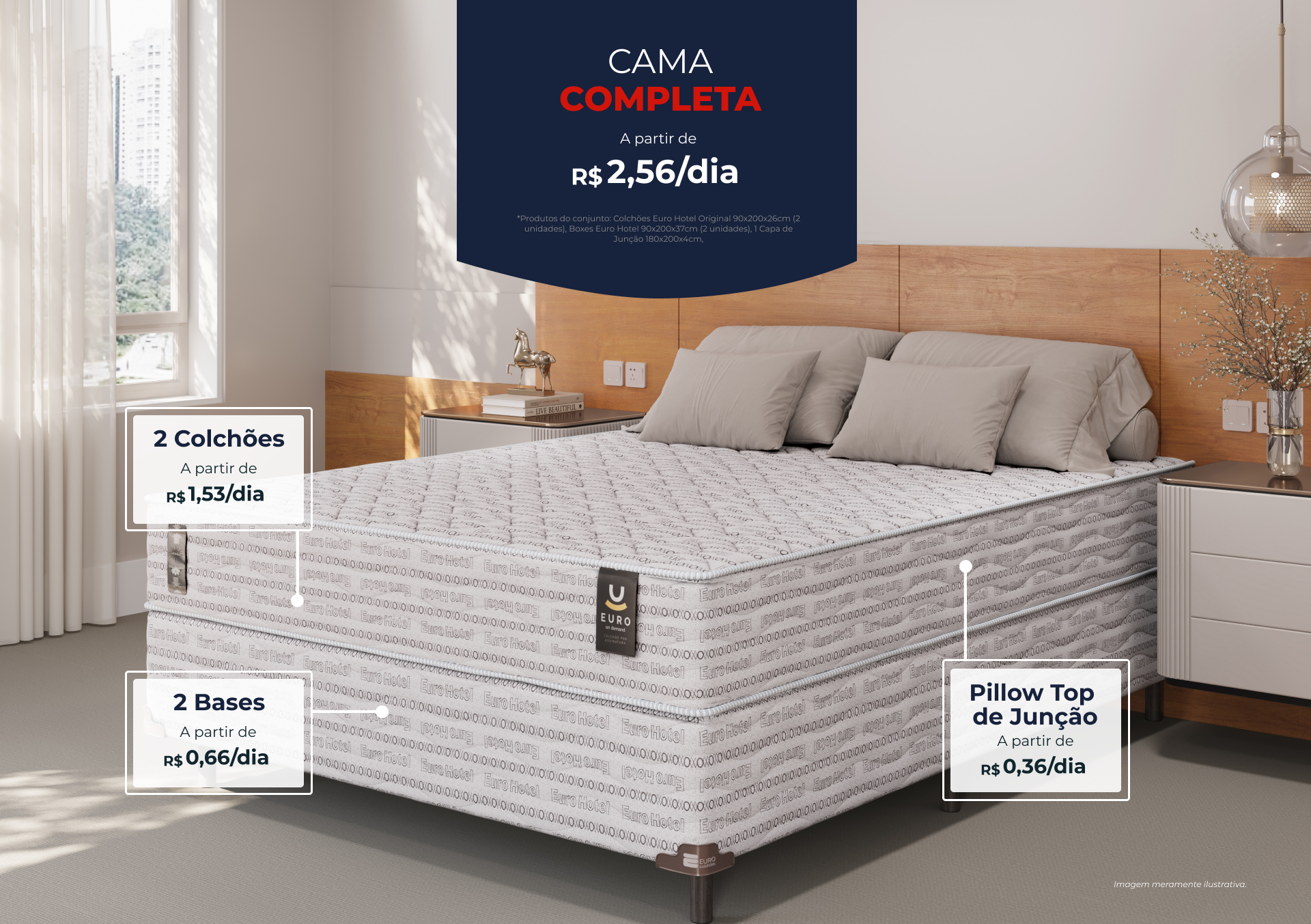 Além das Bases, Cabeceiras e Acessórios, também oferecemos três linhas exclusivas de colchões com diferentes níveis de conforto. A versatilidade da Linha Euro, o luxo da Linha americana Kingsdown e a Linha 100% Sustentável EcoMind. Todos os produtos são testados e aprovados em +200 hotéis, entre as maiores Redes, Hotelaria Independente, OffShores, Motéis, Airbnbs e muito mais!